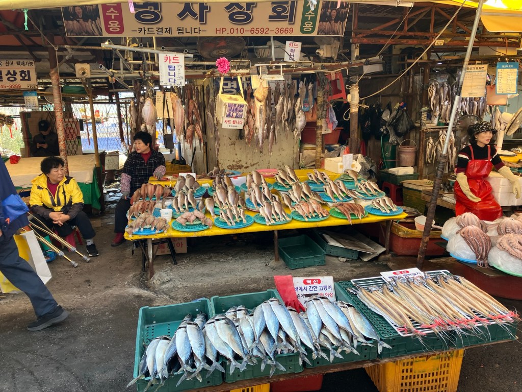 As a whole, Korean food seems based on resourcefulness and occasional scarcity in the use of most, if not all  parts of a core ingredient whether animal (intestines, blood sausages) or vegetables such as mugwort for dishes such as rice cakes. Seafood can also be adventurous to some with dishes based on the still twitching i.e. newly severed, Octopus tentacles known as Sannakji to the visually odd sea pineapples known as Meongge and sea worms known locally as Gaebul. These, and other fish and seafood items are best experienced at the huge Jagalchi Fish Market, where the catch from the morning fleets arrives to be sold, wholesale and retail. Jagalchi is the country’s largest seafood market, offering a “market-to-table” experience where visitors buy fresh, live seafood on the first floor and have it prepared in restaurants on the second floor. Typical dishes would include Jangeo-gui (Grilled Eel), Saengseon-gui (grilled fish) and Maeuntang (a fiery fish stew).
