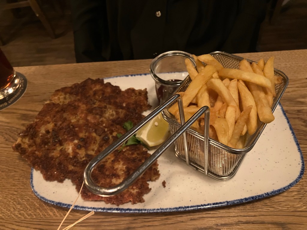 Inside, the bar is cool and dark. Older regulars line the tables to the left as you walk inside. To the right is the main restaurant area with it’s fulsome plates of German food and, of course, Kölsch.